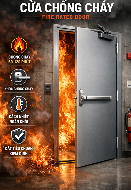 Cửa cuốn chống cháy là dòng cửa chuyên dụng có khả năng ngăn cháy, cách nhiệt và hạn chế cháy lan trong một khoảng thời gian nhất định (EI 60, EI 90, EI 120 phút), giúp bảo vệ con người, tài sản và kết cấu công trình khi xảy ra hỏa hoạn.